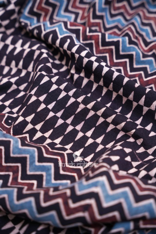 Ajrakh Hand Block Print Natural Dye Cotton Fabric
