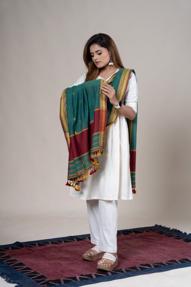 Featuring beautiful Kutch motifs across the body, this dupatta reflects authentic craftsmanship. The classy color palette makes it perfect for sophisticated ethnic styling.