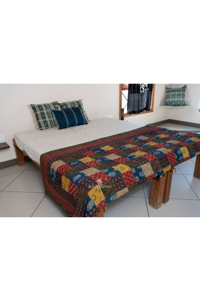 Artisanal Elegance: Reversible Handcrafted Block Print Quilt with Patchwork Accents