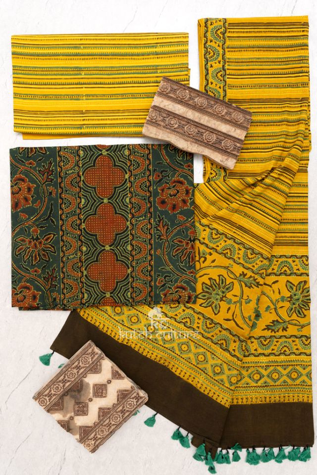 Premium Ajrakh Hand Block Print Natural Dye Cotton Suit Set