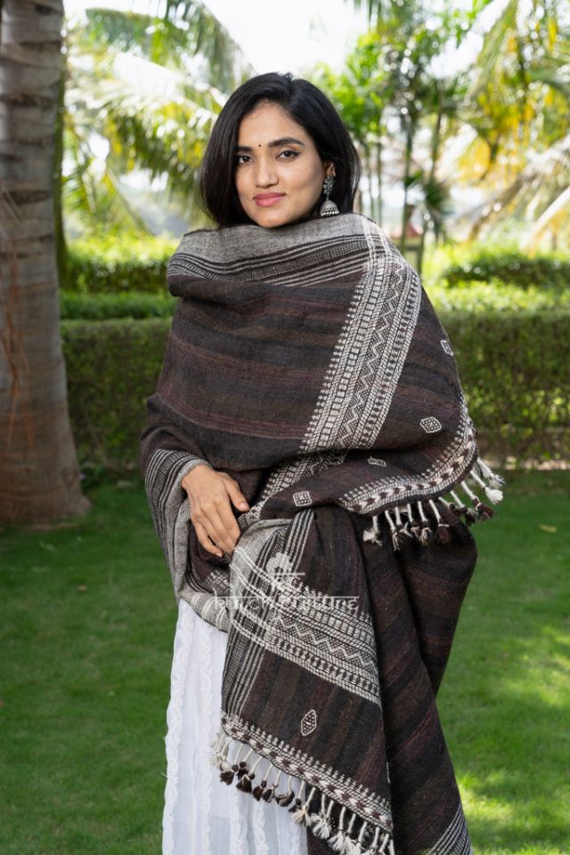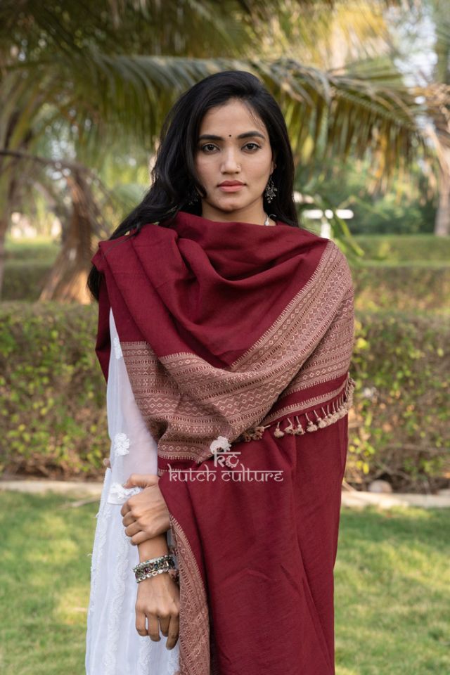 shawl+maroon+wool+weaving+shawl+with+mirrors
