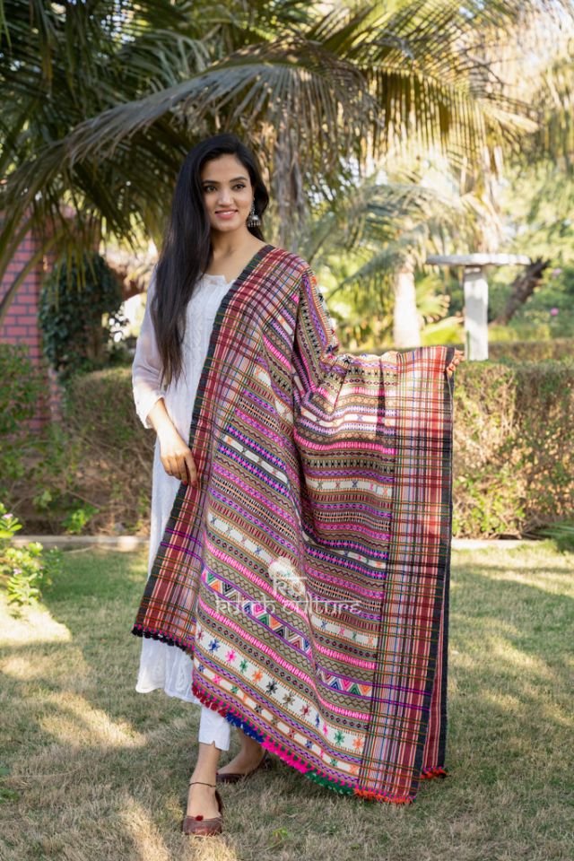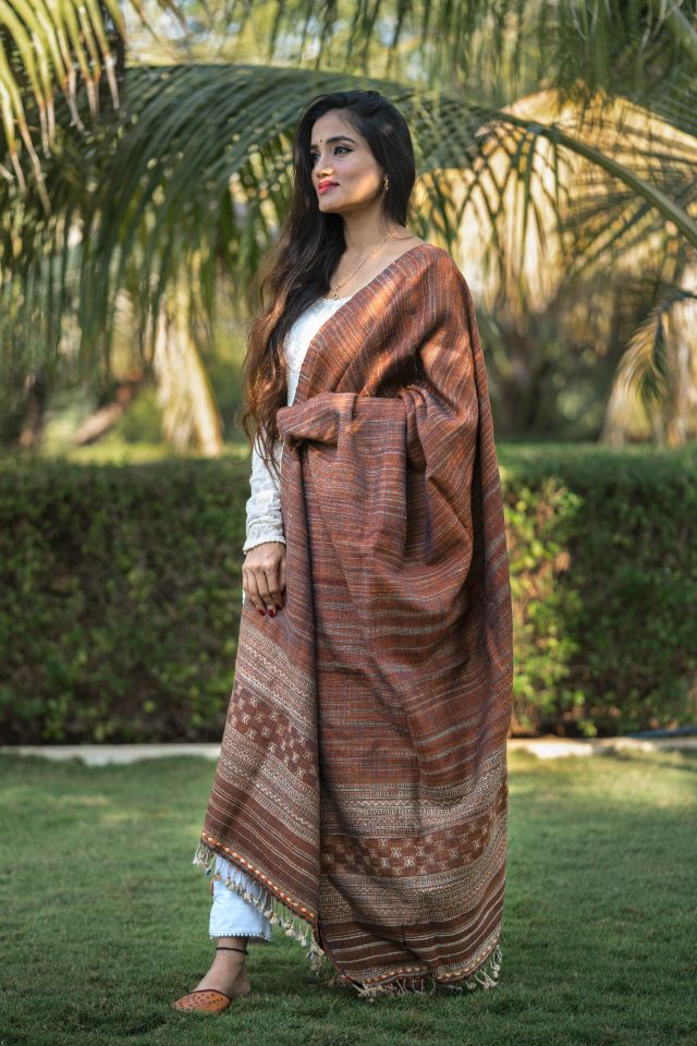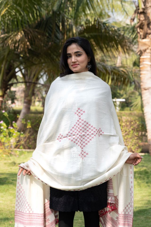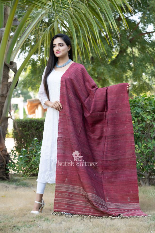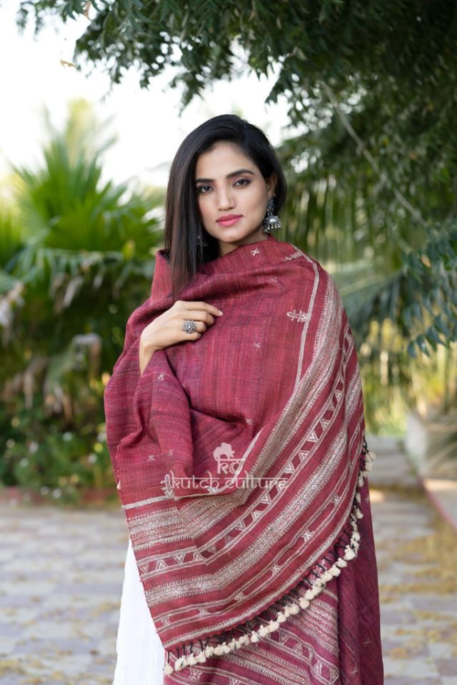 shawl+maroon+wool+weaving+shawl+with+mirror