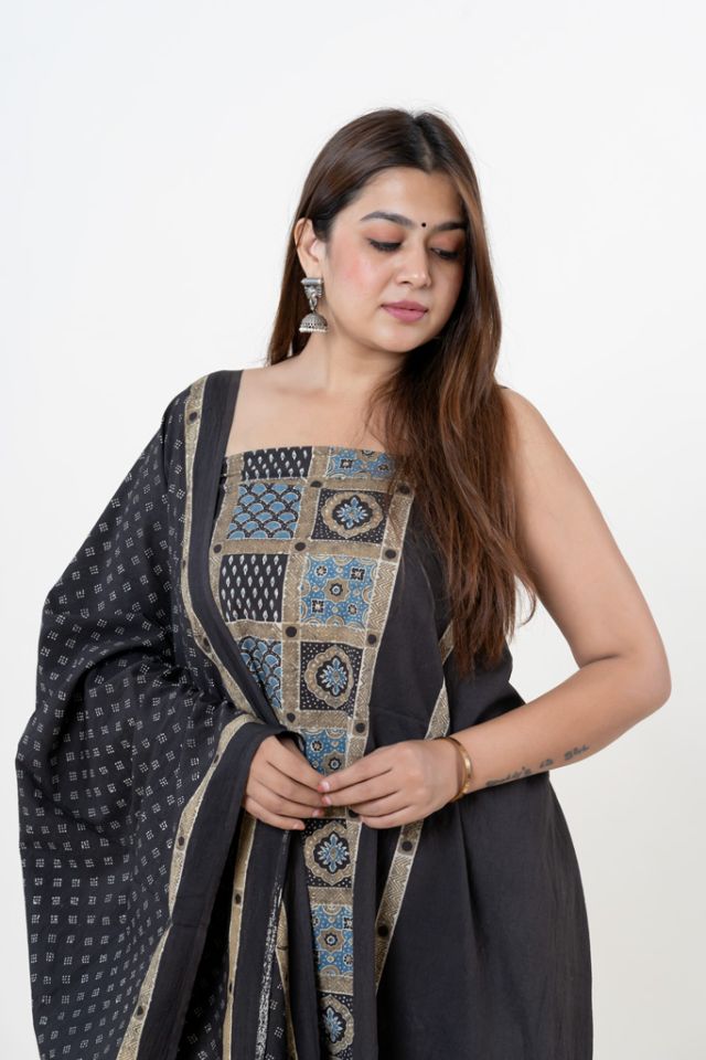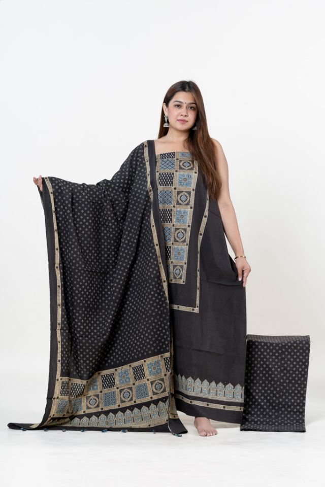 designer maheshwari silk ajrakh sareechanderi hand block prints saree