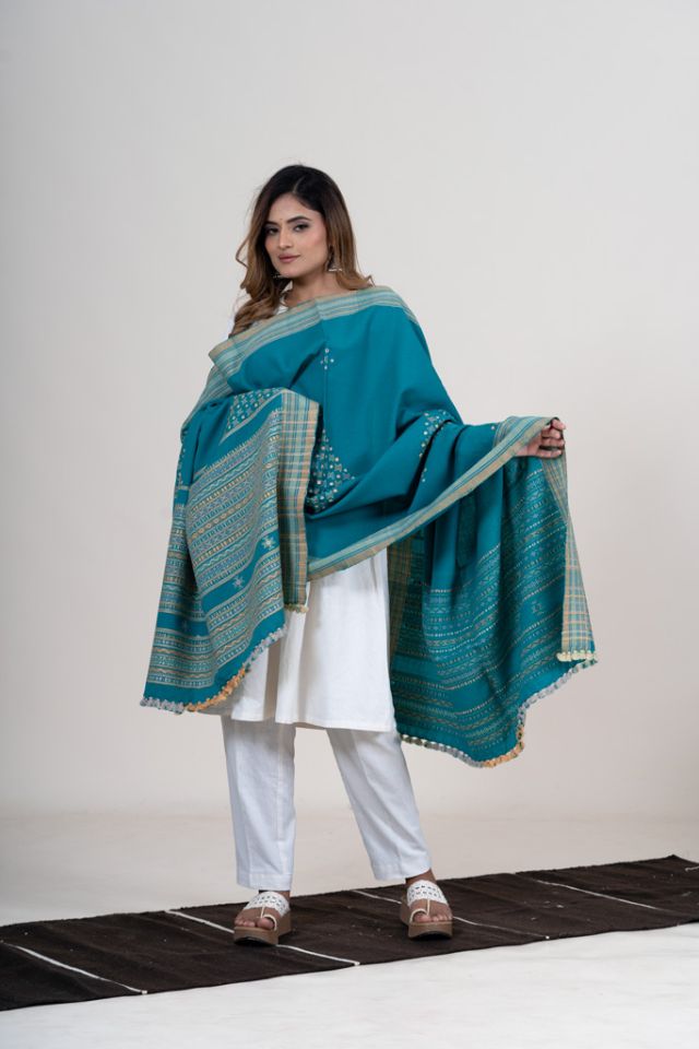 mirror wool saree