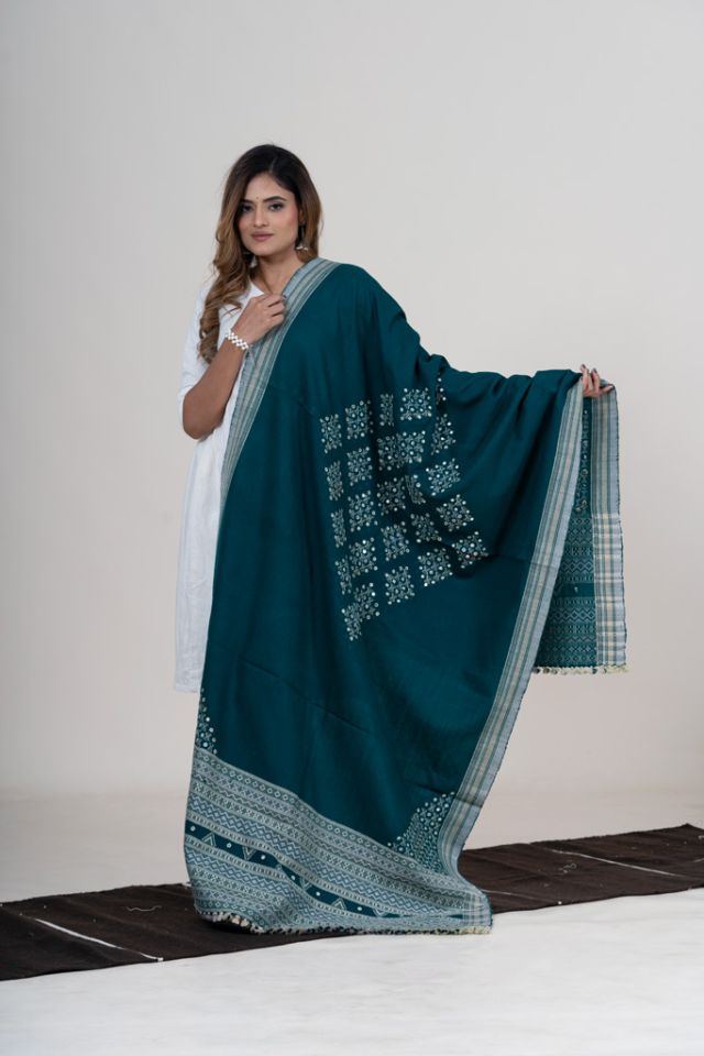 mirror wool saree