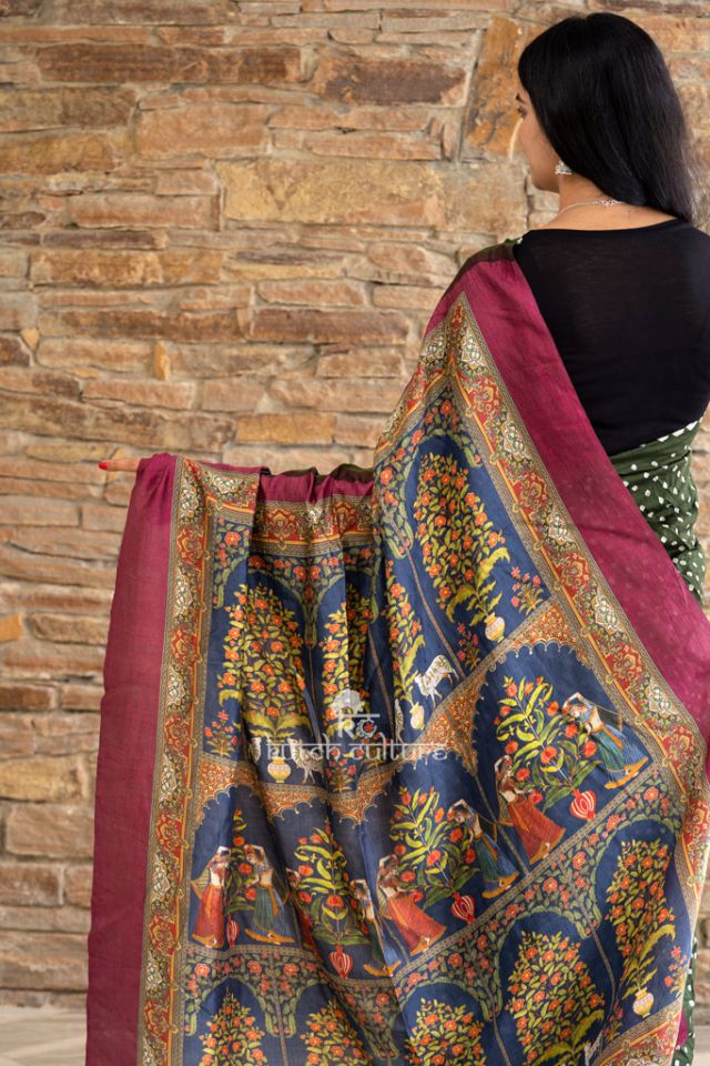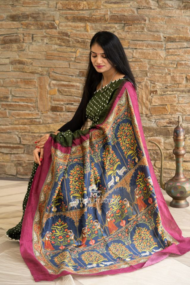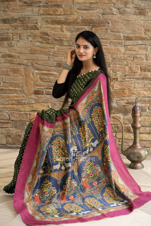 Chiniya Silk Bandhni with Pichwai Print Saree