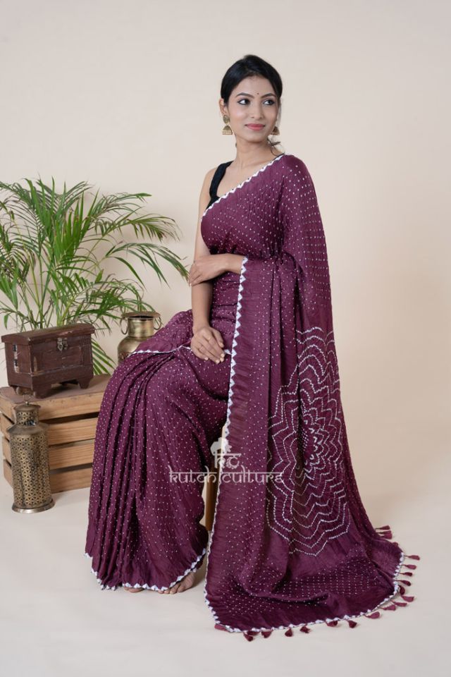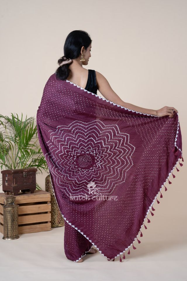 Classy Plum Purple Bandhni Saree with Rai Bandhej