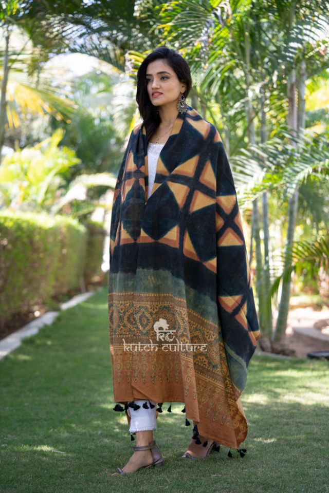 Wear this handwoven shawl by Kutchculture to look your ethnic best when going out. Crafted using the finest wool fabrics, this shawl makes up for the utmost comfort when adorned. Complement your look by adding statement jewellery and a pair of juttis.