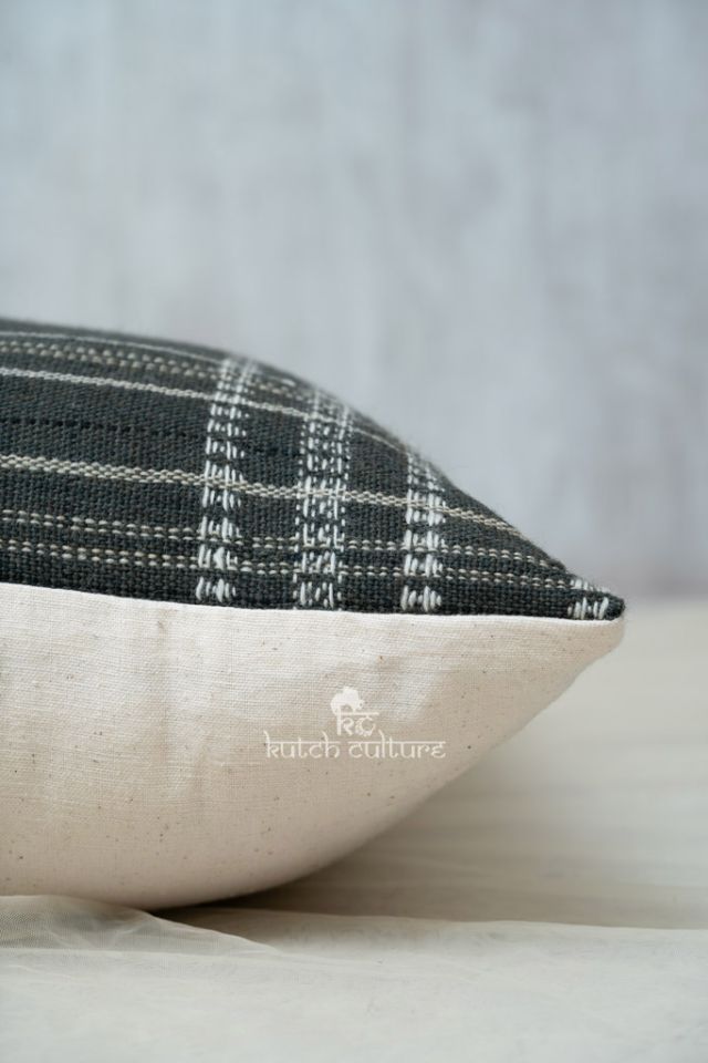 Vintage yet mordern style hand weaving Indian wool cushion cover from Kutch. This totally hand made product. Indian wool has a slightly coarse texture which adds natural beauty into product. You can decorate it at bedrool , living room or at your balcony area. Hand woven stripes and motifs are singnature design of Kutch – India.The front is 100% Indian Wool and the backside is Cotton fabric with zip