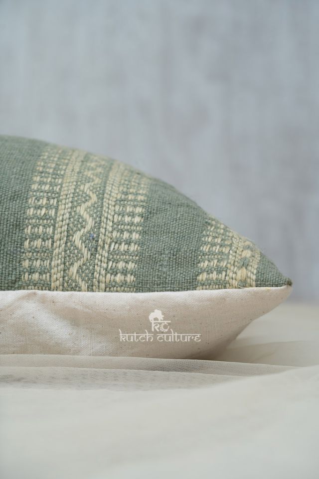 Vintage yet mordern style hand weaving Indian wool cushion cover from Kutch. This totally hand made product. Indian wool has a slightly coarse texture which adds natural beauty into product. You can decorate it at bedrool , living room or at your balcony area. Hand woven stripes and motifs are singnature design of Kutch – India.The front is 100% Indian Wool and the backside is Cotton fabric with zip