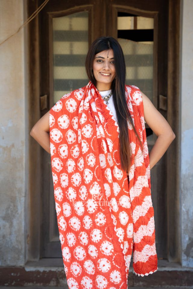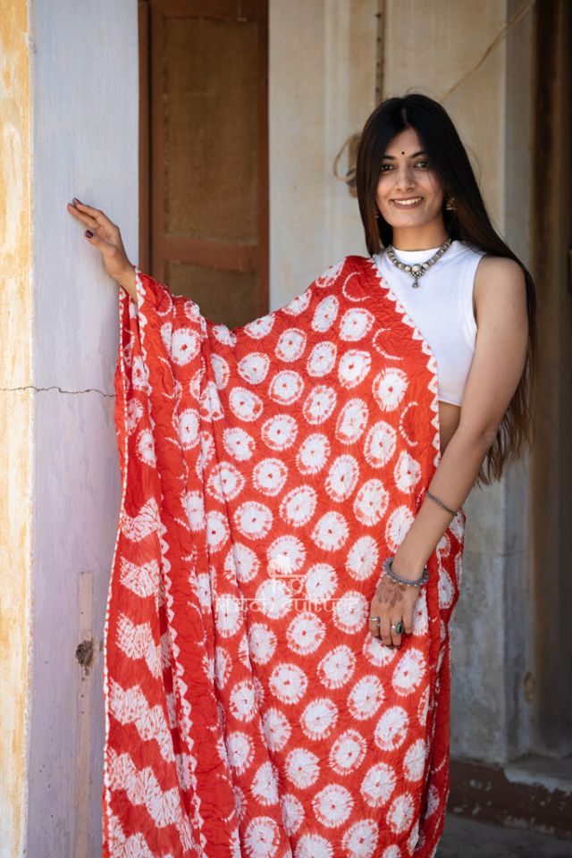 Experience the beauty of handcrafted fashion with our modal silk shibori tie and dye sarees. Each piece showcases intricate tie-dye techniques on luxurious silk, adding a touch of sophistication to your wardrobe