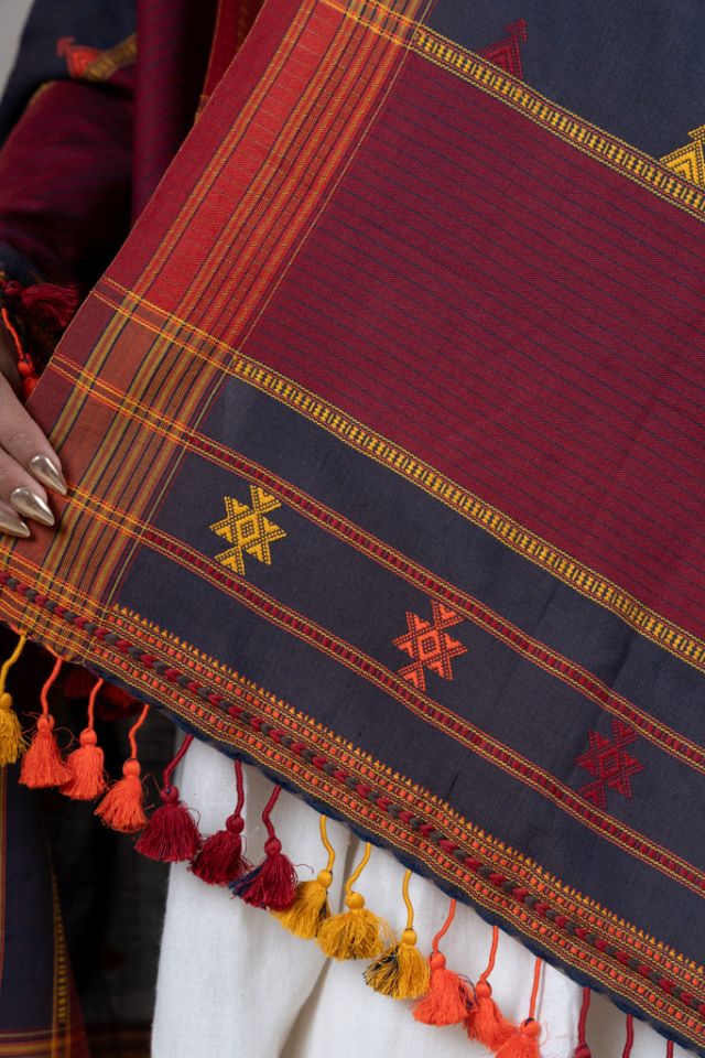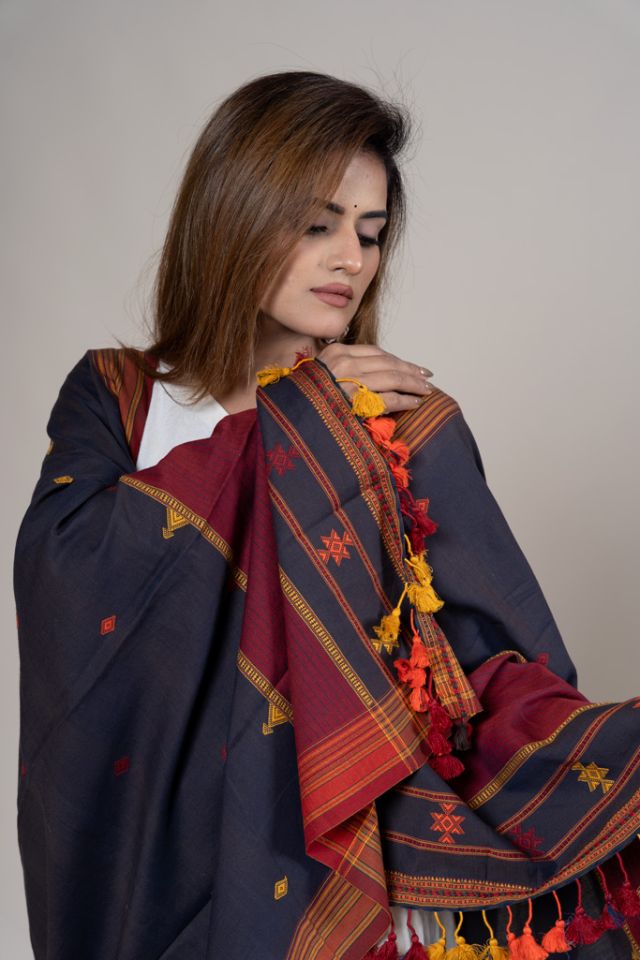 A beautifully woven cotton dupatta enriched with traditional motif artistry from Kutch. Its breathable texture and subtle elegance make it suitable for daily and festive dressing.