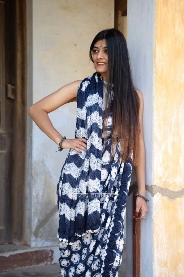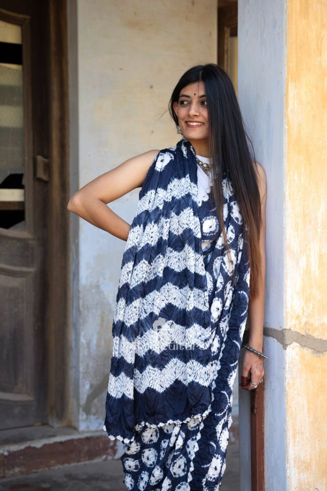 Indulge in luxury with our modal silk shibori tie and dye sarees. The rich fabric and detailed tie-dye patterns make these sarees an exquisite choice for any special event.