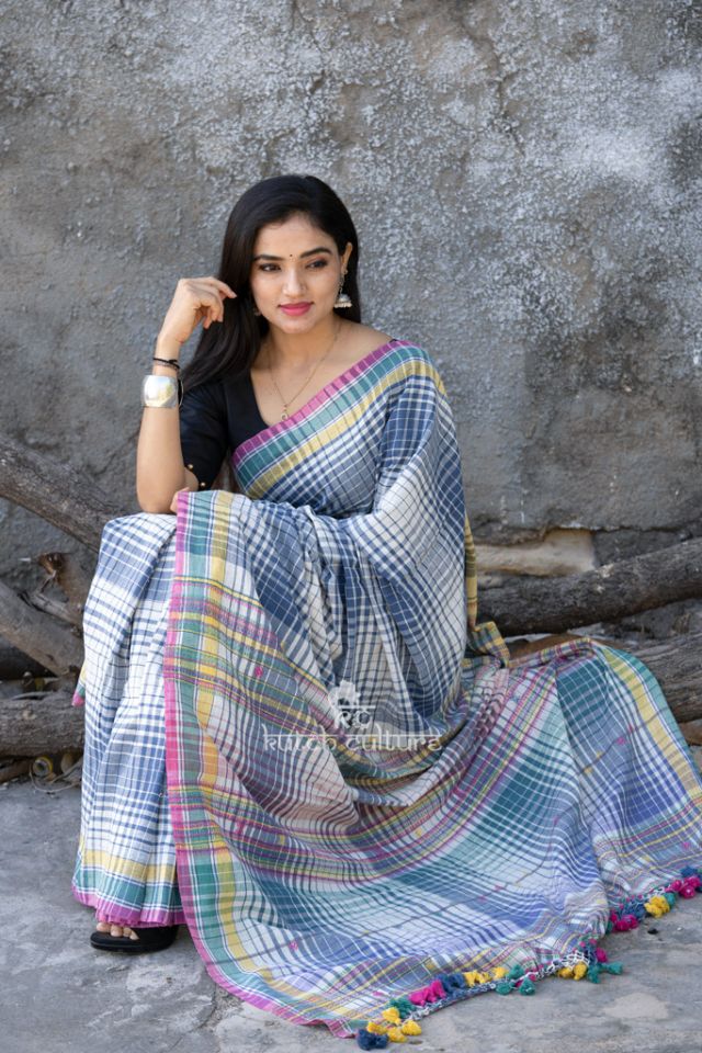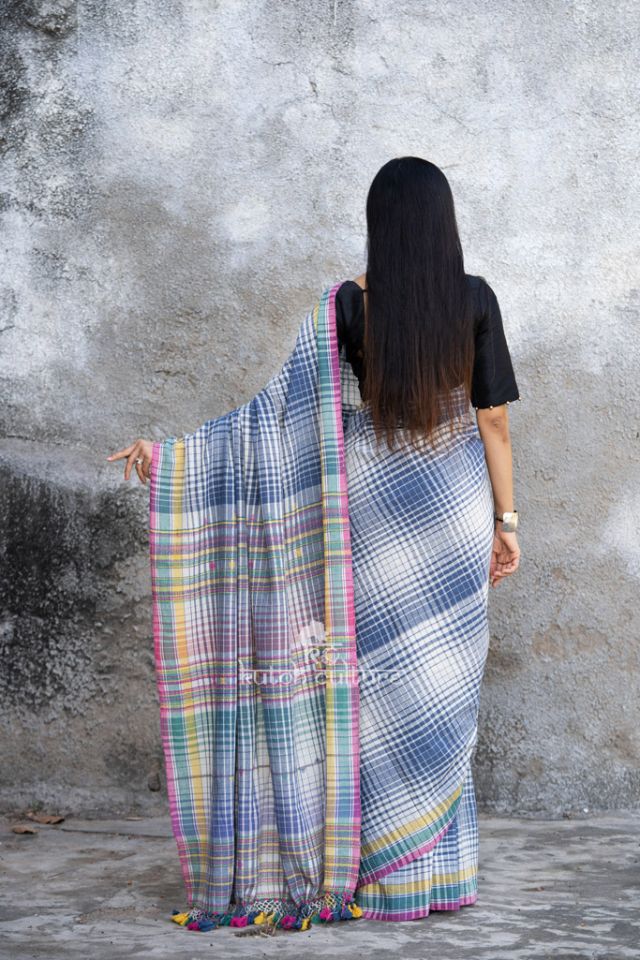 Breathtaking beauty -this is what the saree is! Gorgeous multicolor designer motifs on the pallu of this kala cotton saree from kutchculture can compel you to dance in joy! Add on heavy designer blouse and oxidised jewellery.