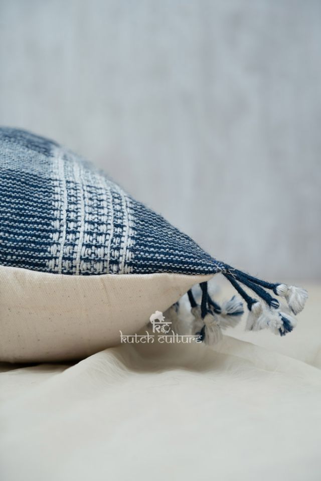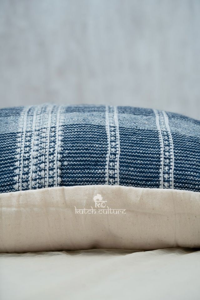 Vintage yet mordern style hand weaving Indian wool cushion cover from Kutch. This totally hand made product. Indian wool has a slightly coarse texture which adds natural beauty into product. You can decorate it at bedrool , living room or at your balcony area. Hand woven stripes and motifs are singnature design of Kutch – India.The front is 100% Indian Wool and the backside is Cotton fabric with zip