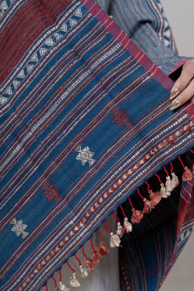 Kutch Handwoven Cotton Dupatta in Teal Blue