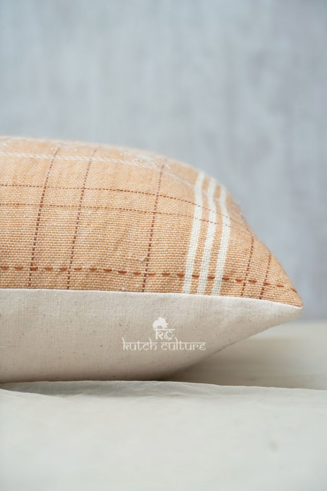 Vintage yet mordern style hand weaving Indian wool cushion cover from Kutch. This totally hand made product. Indian wool has a slightly coarse texture which adds natural beauty into product. You can decorate it at bedrool , living room or at your balcony area. Hand woven stripes and motifs are singnature design of Kutch – India.The front is 100% Indian Wool and the backside is Cotton fabric with zip
